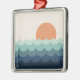Abstract wavy blue ocean at sunset illustration with blue stormy waves and sun decoration for everybody who likes nature and simple elegant summery landscape designs.