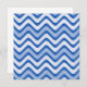 Features a beautiful pattern of blue and white waves. They are made up of curving lines, geometric forms that are entirely abstract but also inspired by the natural world. A clean and stylish design.