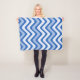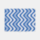 Features a beautiful pattern of blue and white waves. They are made up of curving lines, geometric forms that are entirely abstract but also inspired by the natural world. A clean and stylish design.