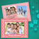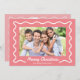 Wavy Border Merry Christmas 3 Photos Pink Holiday Card