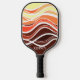 This pickleball paddle features an artistic and dynamic design. The surface is covered in a pattern of waves in various shades of browns, with bold white lines woven throughout the graphic, creating a sense of movement and depth.