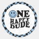 Wavy chequered blue preppy smile one happy dude classic round sticker.
