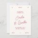Spanish wedding invitations. An English-language version of this design is available in our store for bilingual weddings. A fun wedding invitation featuring your custom photo framed by a hand-drawn wavy border. The wedding date appears at the top, with the couple's names along the bottom. The back of the card has your invitation text with the names in chic script calligraphy. We have chosen a cherry red color against a cream background, but all colors are fully customizable to match your style and theme. View the collection linked on this page for the full wedding suite or browse our store for more wedding invitations. Invitación de boda en español con marco ondulado y diseño retro. Editable con foto personalizada y tipografía moderna, perfecta para parejas que buscan un estilo divertido y único.