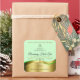 The design features a noble shimmery wavy gold decoration with soft glitter stars and a light green background.