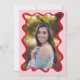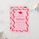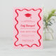 Wavy retro Graduation invitation card. Fancy invitation in pink and red.