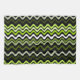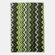 A seamless repeating surface pattern with bold wavy vertical stripes in shades of light and dark green on a black background. A retro inspired design perfect for modern kitchen decor. Available in other colors