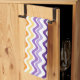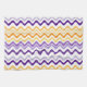 A seamless repeating surface pattern with bold wavy vertical stripes in shades of orange, lavender and purple on a white background. A retro inspired design perfect for modern kitchen decor. Available in other colors