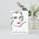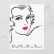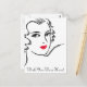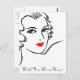 Vintage line drawing of a pretty young woman with wavy hair. The only colour is her red lips. There is customisable text on postcards and cards. Perfect for birthdays, congratulations, invitations, or a "I wish you were here"