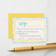 This trendy hand drawn style illustrated wedding RSVP enclosure response card features a scribble wavy and a quirky bow. The whimsical squiggle design includes handwritten font. Bold yellow and blue colours for classic yet modern wedding stationary.