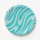 Wavy Loops Retro Abstract Pattern in Aqua Teal Paper Plate