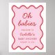Wavy Modern Curvy Retro Pink and Red Baby Shower Poster