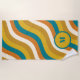 Wavy Pop Stripes Retro Pattern Teal Ochre Initial Beach Towel