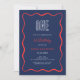This uniquely designed invitation blends playful waves with a charming colour palette of red and blue, setting a festive and inviting tone for your child's first birthday celebration. Perfect for those seeking a blend of elegance and fun.