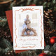 Watercolor ribbon bow frame Christmas holiday card with a photo and modern stylish script font.