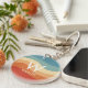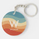 Trendy double sided keychain featuring wavy stripes in retro colours. Large centred monogram and associated name. Clean, simple minimalist typography. Fully personalizable. Great gift for someone special or yourself.