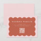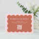A trendy wedding website enclosure card with editable QR code featuring a wavy scallop shape in terracotta with a blush pink edge with white font.