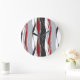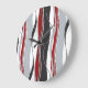 Wavy Vertical Stripes Red Black White & Grey Large Clock