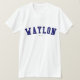 Waylon! Is your name Waylon? Or do you have a husband, boyfriend, male family member or male friend named Waylon? If so, this "Banner" shirt is exactly the gift that you're looking for! The design features "Waylon" in arched navy lettering across the chest in the classic College font.