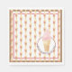 For the ice cream lover, this napkin features a chocolate brown and pink border with a pattern of ice cream cones. The circle has a strawberry ice cream cone, with text that reads, 'We All Scream For Ice Cream'.