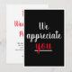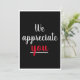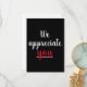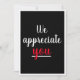 A casual "We appreciate you" card. Red and white appreciation card that you can make personal with a nice gesture from the company boss, co-workers or anyone. Just use the "personalise this template" feature to edit the text to make it your own. Other paper styles available.