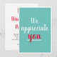 A casual "We appreciate you" card. Red and white script on light teal appreciation card that you can make personal with a nice gesture from the company boss, co-workers or anyone. Just use the "personalise this template" feature to edit the text to make it your own. Other paper styles available.