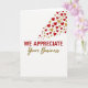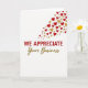 This Valentine’s Day card shares gratitude with warmth and elegance. Set on a bright white background, a cascade of red and gold hearts flows from the upper corner, creating movement and depth with soft shadows and varied sizes. At the center, the message stands out clearly. “WE APPRECIATE” appears in bold red lettering, while “Your Business” is written in flowing gold script, adding a refined touch. The red, gold, and white color palette feels welcoming and thoughtful without overpowering the design. The open layout keeps everything balanced and easy to read. This card is a beautiful way to express thanks, appreciation, and care, making it ideal for Valentine’s Day or customer appreciation messages.