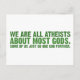 Sign from the Atheist Bus Campaign. Green letters read "we are all atheists about most gods, some of us just go one god further." A quote by Richard Dawkins. Perfect for the atheist, agnostic, or sceptic in your life!