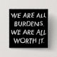 Image description: wiggly white lettering reading, "We are all burdens. We are all worth it."