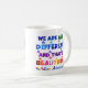 Inspirational quote of “We Are All DIFFERENT And That's BEAUTIFUL” with unique Autism puzzles, and colourful butterflies flying on the background to support and advocate Autism Awareness.