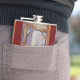 The flask itself is fine. It’s a cheap flask, obviously bought in bulk, however am prepared to overlook that. Given that it is a personalized item, I would have liked to have seen gift boxing instead of the generic packaging. Terrible printing, and/or quality. It’s a cheap, tacky vinyl. It is not cut straight and is also applied in a way that it is overhanging the bottom, causing the glue to catch on items and it will eventually roll and tear, damaging the wrap.