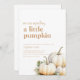 If you love neutrals, this simple style invitation is right for you. The invitation features an elegant design, with a soft, white-coloured background. In the centre, the party details are beautifully scripted in a beige text exuding an air of sophistication. Soft fall foliage with white pumpkins are on the right side. Welcome guests to your engagement party in style. Background colour and text is editable.