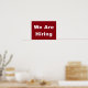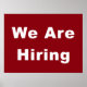 A modern red poster for a store window notifying the public that you are hiring new staff.