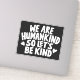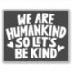 A meaningful and positive quote to spread kindness in black and white. The words read "We are Humankind. So Let's Be Kind."