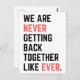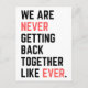 We Are Never Getting Back Together Like Ever for men and women funny quote Concert postcard