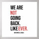 We are not going back ever, vote for Harris, Kamala Harris for President, human rights for democrat, Election 24, Bold text on a grey background states "WE ARE NOT GOING BACK. LIKE EVER." with "HARRIS 2024" written below. Certain words are emphasized in red, conveying a strong, forward-looking message.