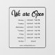This cling is designed to help businesses make their opening hours known to potential customers. It's an easy way for customers to quickly find out what time the business is open and when they can expect to find it open.