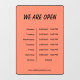 This cling is designed to help businesses make their opening hours known to potential customers. It's an easy way for customers to quickly find out what time the business is open and when they can expect to find it open.