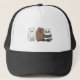 We Bare Bears Trucker Cap: A stylish hat for casual use, suitable for outdoor activities. It showcases the We Bare Bears characters and is made from cotton/polyester, providing a comfortable fit.