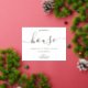 We bought a house! With a simple and minimalist real gold foil on white elegant script font typography moving announcement.