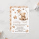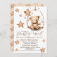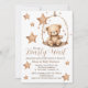 "We can Barely Wait" Baby Boy Shower Invitation with Cute watercolor Bear sitting on a cradle surrounded by stars! Personalise it!