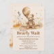 "We can Bearly Wait" Baby Boy Shower Invitation with Watercolor Dreamy Sitting Bear holding balloon in the grass! Personalise it!