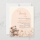 We can Bearly wait Baby Shower invitation. A cream, beige coloured background and a peach coloured arch. Decorated with watercolored wildflowers in beige, pink and a happy teddy bear.