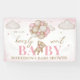 Celebrate the upcoming arrival of your little one with our "We Can Bearly Wait" Baby Shower Banner! Featuring an adorable brown bear adorned with a charming pink bow and holding brown and pink balloons, this design is set against a dreamy backdrop of fluffy clouds and twinkling stars. Perfect for adding a whimsical and heartwarming touch, this banner makes your baby shower truly unforgettable! BBS389