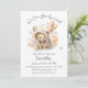 Get ready to celebrate the arrival of a new bundle of joy with this charming baby shower invitation! It features an irresistibly cute baby bear snuggled up in a cosy blanket, along with the popular phrase "We Can Bearly Wait" playfully displayed alongside the adorable image, there's no doubt that this invitation will set the perfect tone for your upcoming event.