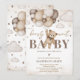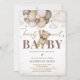 Celebrate the upcoming arrival of your little one with our "We Can Bearly Wait" Baby Shower Invitation! This delightful design features an adorable adorable brown bear wearing a stylish brown bow, holding balloons in varying shades of brown. The scene is set against a dreamy backdrop of fluffy clouds and twinkling stars, creating a whimsical and heartwarming invitation. Make your baby shower unforgettable with this enchanting invitation. BBS391