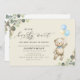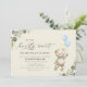 bear, we can bearly wait baby shower invitation and watercolor greenery. The text and colours can be personalised.