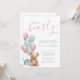 "We can BEARly wait" sets the tone for this adorable baby shower invitation, perfect for celebrating the mother to be, whether she’s is going to be surprised by the gender at birth (aka gender neutral), or even boy and girl twins or even triplets! Featuring pink and blue watercolor balloons, a cute tan teddy bear with a pink bow and blue accents, and a teal gift box, this design is charmingly versatile. The fonts are a mix of elegant script calligraphy and classic serif, creating a stylish and balanced look. The current font colours are pink and grey, but you can customise them, along with the background, to match your theme. This invitation works beautifully for a gender-neutral shower or for boy and girl twins, making it a delightful choice for any baby shower celebration. The watercolor elements and cute bear add a touch of playful elegance, perfect for honouring the mother to be on her special day. Adorable Teddy Bear We Can Bearly Wait Baby Shower Invitation Pink And Blue Balloons Gender Neutral.