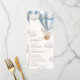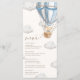 This menu features a soft hot air balloon teddy bear design and modern fonts. The script heading is an image that cannot be edited. All of the other text is fully editable. For more advanced customisation of this design, simply select the "Customise It" button above.