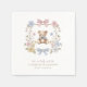 Celebrate the upcoming arrival of your little one with these adorable teddy bear baby shower napkins. The charming design features a sweet teddy bear nestled within a delicate floral wreath, adorned with soft pink and blue bows. It's the perfect touch of whimsy and sweetness for any baby shower celebration. These napkins are sure to add a delightful and memorable element to your party décor, making your special day even more enchanting for guests and parents-to-be.