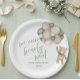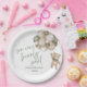 Celebrate your little one on the way with these adorable “We Can Bearly Wait” baby shower plates. Featuring a cute teddy bear holding pastel balloons, this charming design perfectly suits a neutral, woodland, or boho-style baby shower.